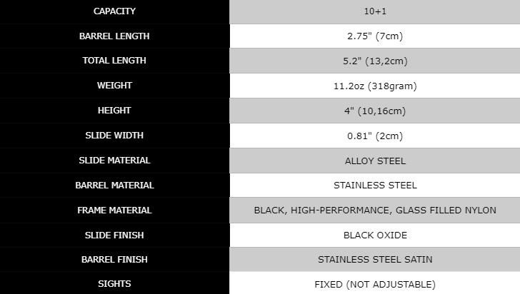 This small size pistol is suitable for shooting at short distances, which is why the sights are fixed, as adjustment is not necessary at this distance.